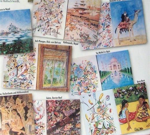 The selected pictures originate from my travel mark book, into which I painted approx. 100 gouache pictures (in A4/A3 format) on my 2 year journey around the world.