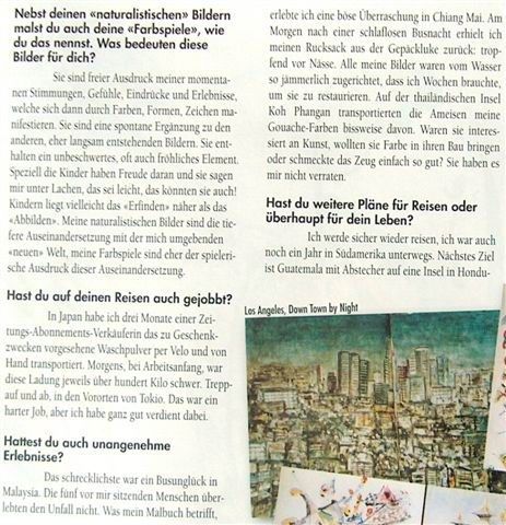 Die ausgewählten Bilder stammen aus meinem Reisemalbuch, in welches ich ca. 100 Gouache-Bilder (in A4/A3 Format) auf meiner 2-jährigen Reise um die Welt gemalt habe.